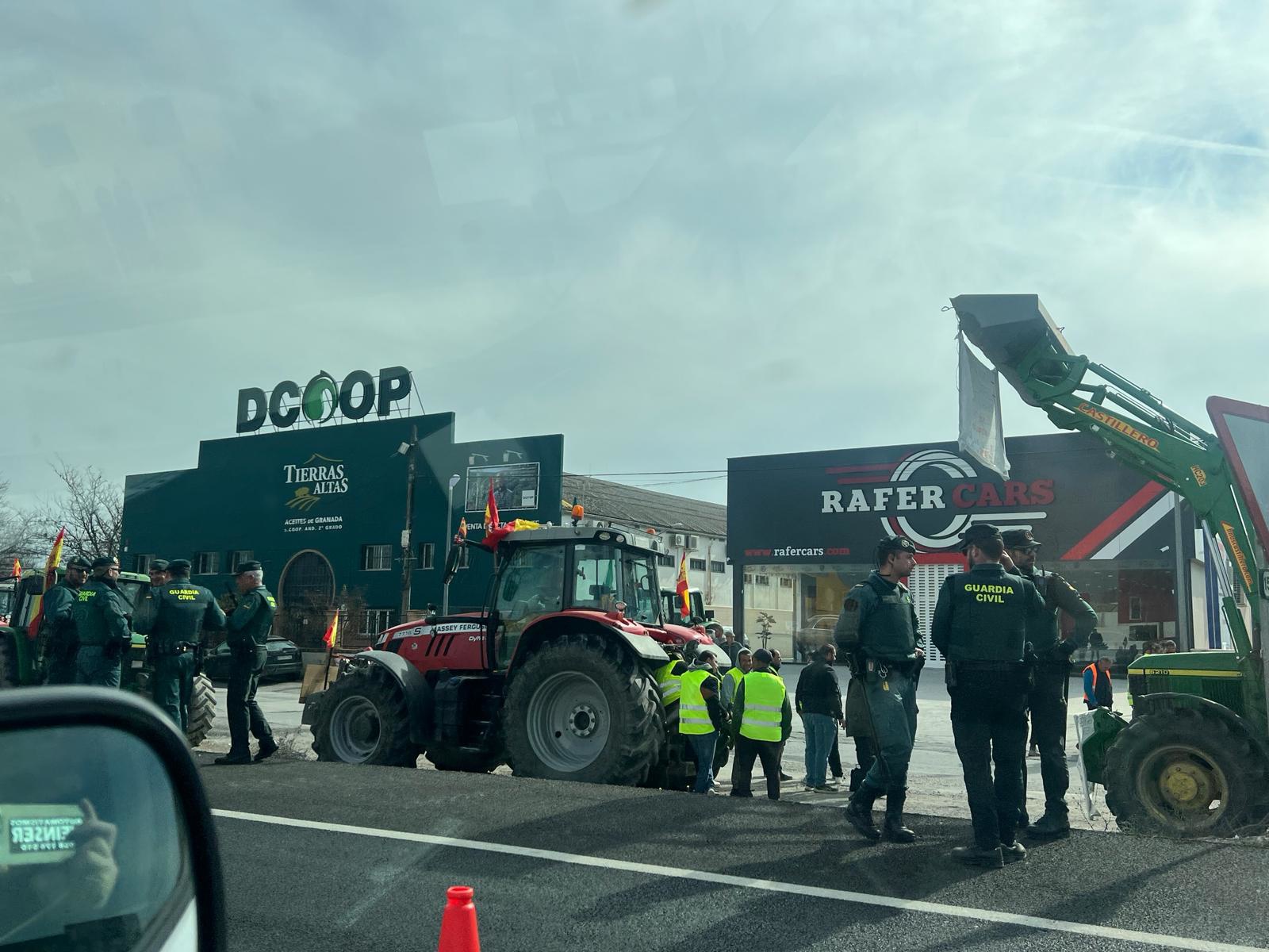 La Guardia Civil ha detenido a cinco personas en la concentración junto a la A-92G en término municipal de Santa Fe, en el área metropolitana de Granada, que llevan a cabo este miércoles los agricultores y ganaderos que han organizado las tractoradas que pretendían llegar a la circunvalación de la capital granadina en la mañana.