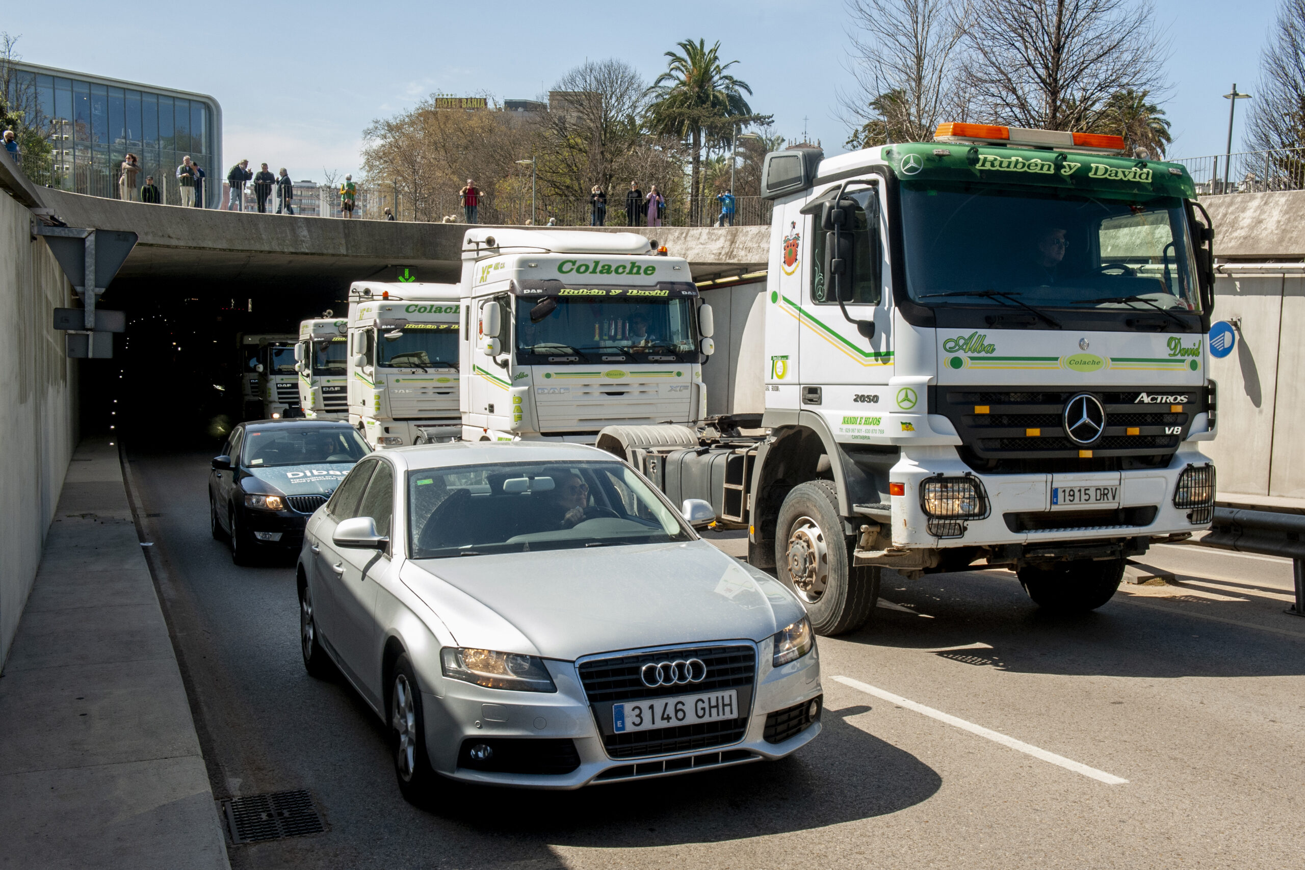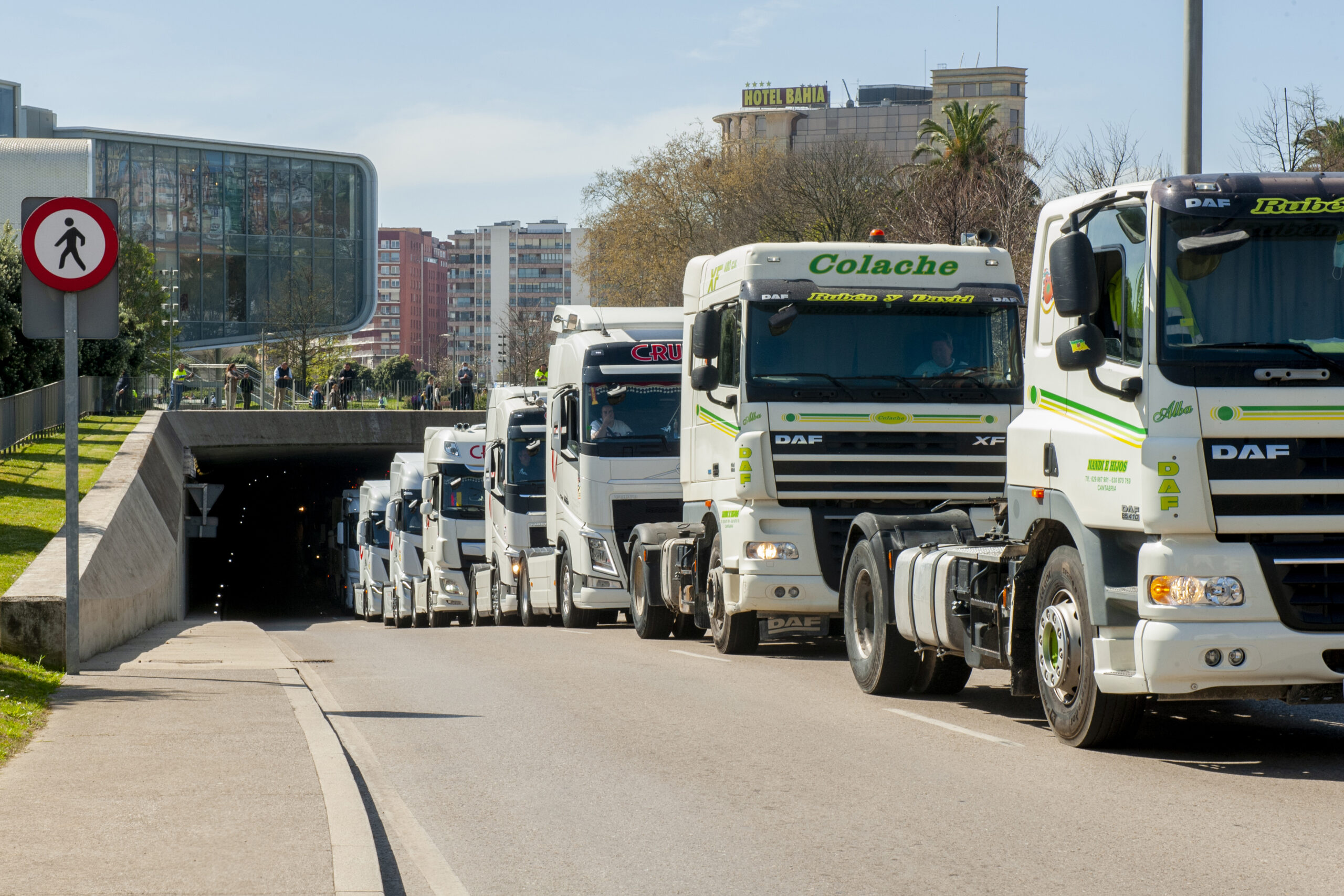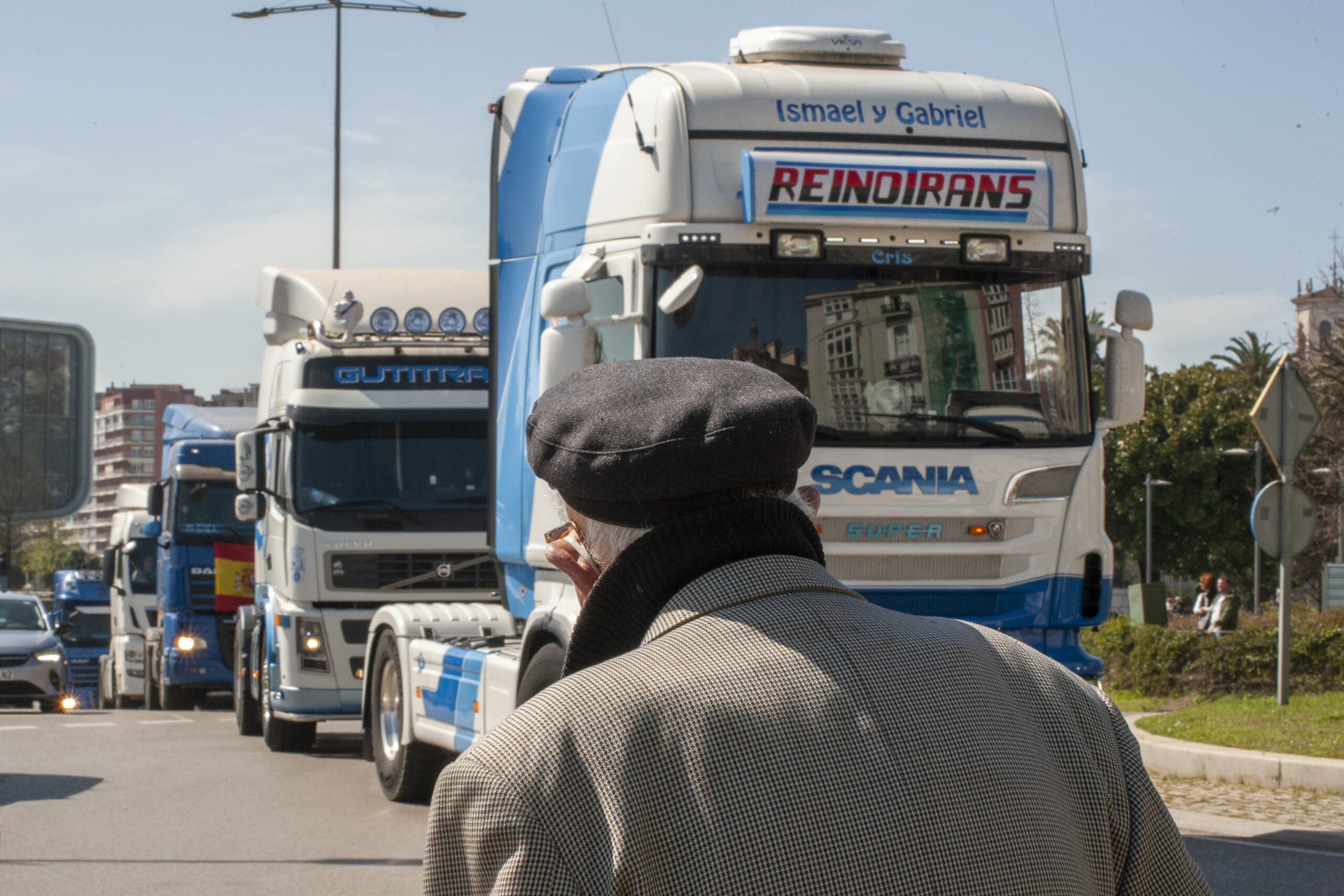De hecho, el problema con el permiso –solo para cabezas tractoras y camiones– ha retrasado casi una hora la salida de la marcha lenta, que ha partido del Polígono de Raos con destino a la rotonda del Centro Botín, donde han dado la vuelta creando una caravana en ambos sentidos, cruzándose los que llegaban a la ciudad y los que ya salían. Éstos han ocupado el carril central, dejando paso al tráfico a izquierda y derecha.