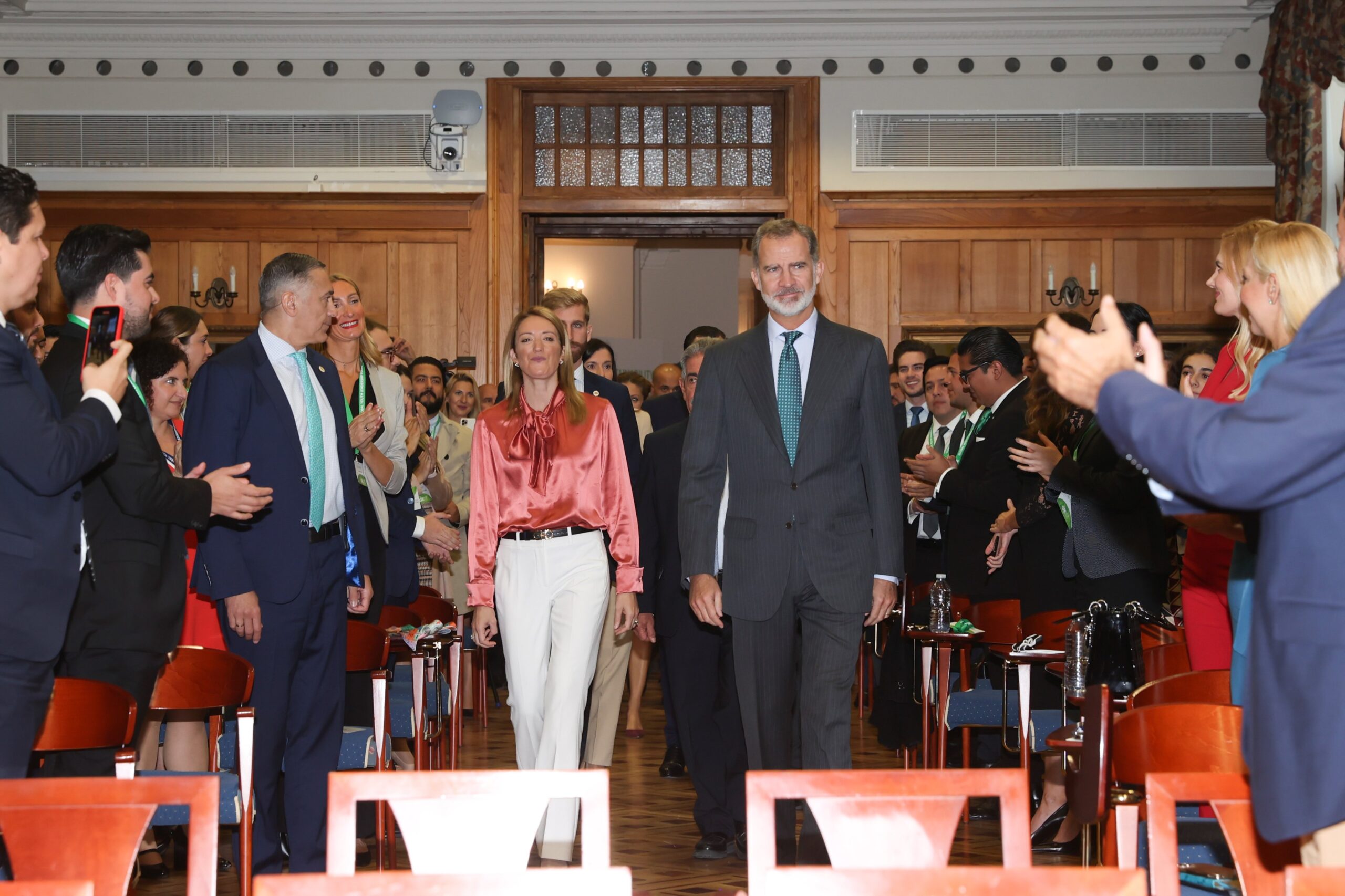 Tras el acto, las autoridades han salido al exterior del Palacio para hacerse una foto de familia con los participantes en el foro, y después el Rey se ha reunido con los jóvenes y con la presidenta del Parlamento Europeo.