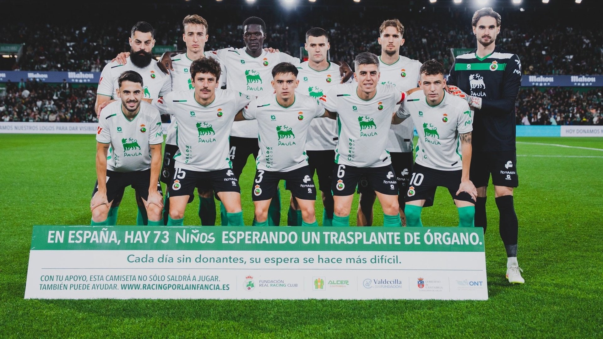 Esta iniciativa no hubiera sido posible sin los patrocinadores del Racing que, en un hecho inédito en el fútbol profesional, donaron su espacio en la equipación. Se trata de Plenitude, Cantabria Labs, Cantabria Telecom, Austral, Banco Santander, MGS Seguros, Palets del Cantábrico y Ferroluz.