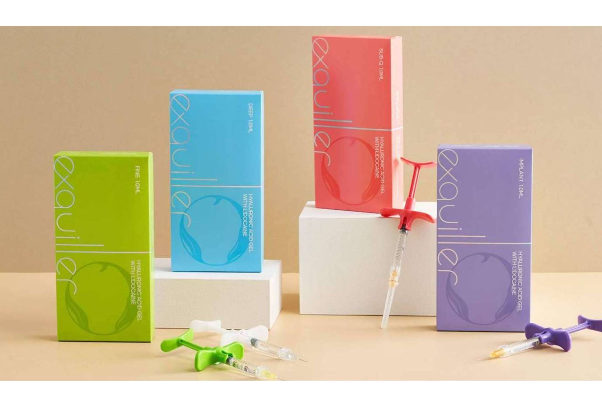 En ese sentido, “Exquiller Fine” aporta hidratación y mejora la elasticidad de la piel, dándole un brillo natural. “Exquiller Deep” fue especialmente formulado para mejillas, labios y frente. “Exquiller Sub Q” es ideal para el tratamiento de líneas de marioneta, pliegues entre cejas, pliegues nasolabiales, mentón, así como para reafirmar la cara ovalada. Por su parte, “Exquiller Implant” fue especialmente desarrollado para el tratamiento del mentón y relleno del área de la nariz.