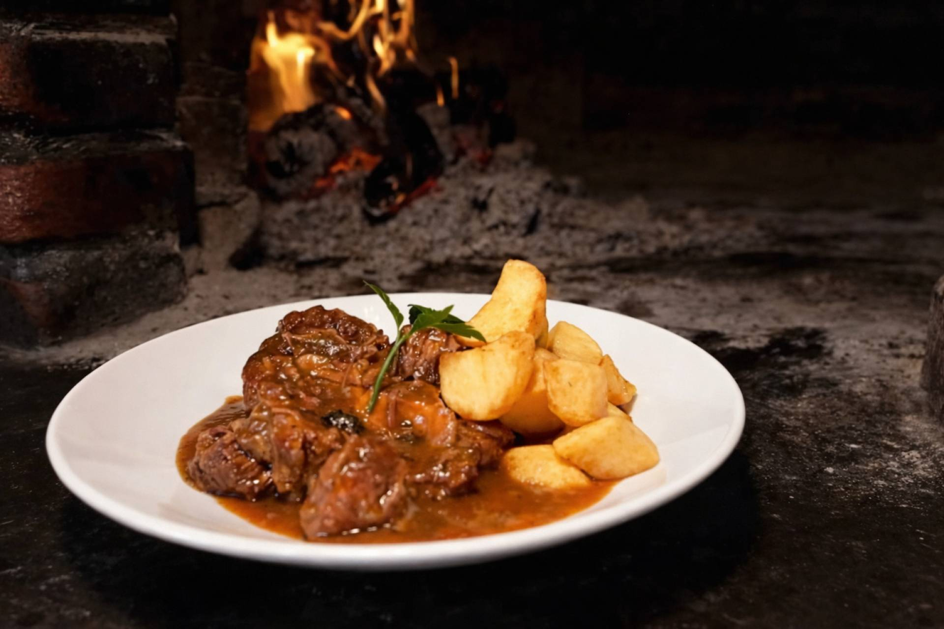 En Las Cuevas de Luis Candelas, el Rabo de Toro se elabora en horno de leña, con un proceso que se prolonga durante seis horas. Exige tiempo, atención y respeto absoluto por el producto. Fuego bajo, paciencia y oficio para lograr una carne melosa que se deshaga y una salsa de sabor profundo. Una receta que conecta directamente con la cocina de siempre, la que se construye desde el tiempo.