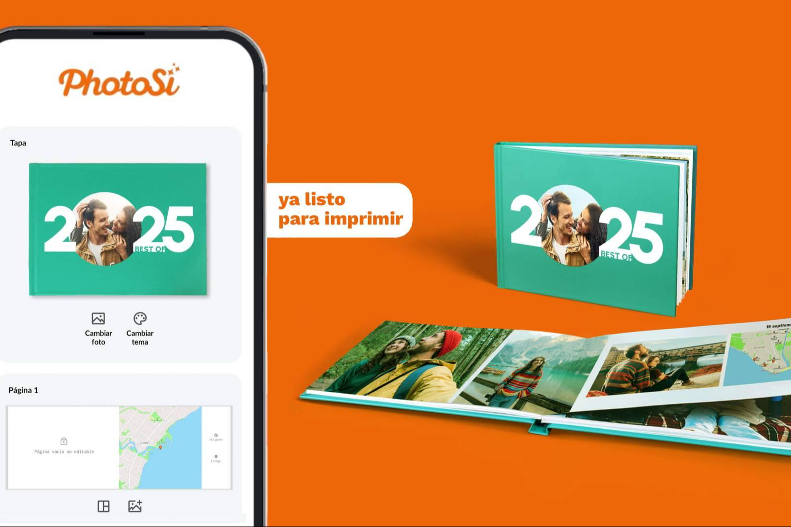 La app de PhotoSì integra funciones de Inteligencia Artificial para seleccionar las mejores fotos, maquetarlas automáticamente y enriquecer los recuerdos más especiales con fechas y mapas, ofreciendo un resultado único de forma rápida, sencilla e intuitiva.