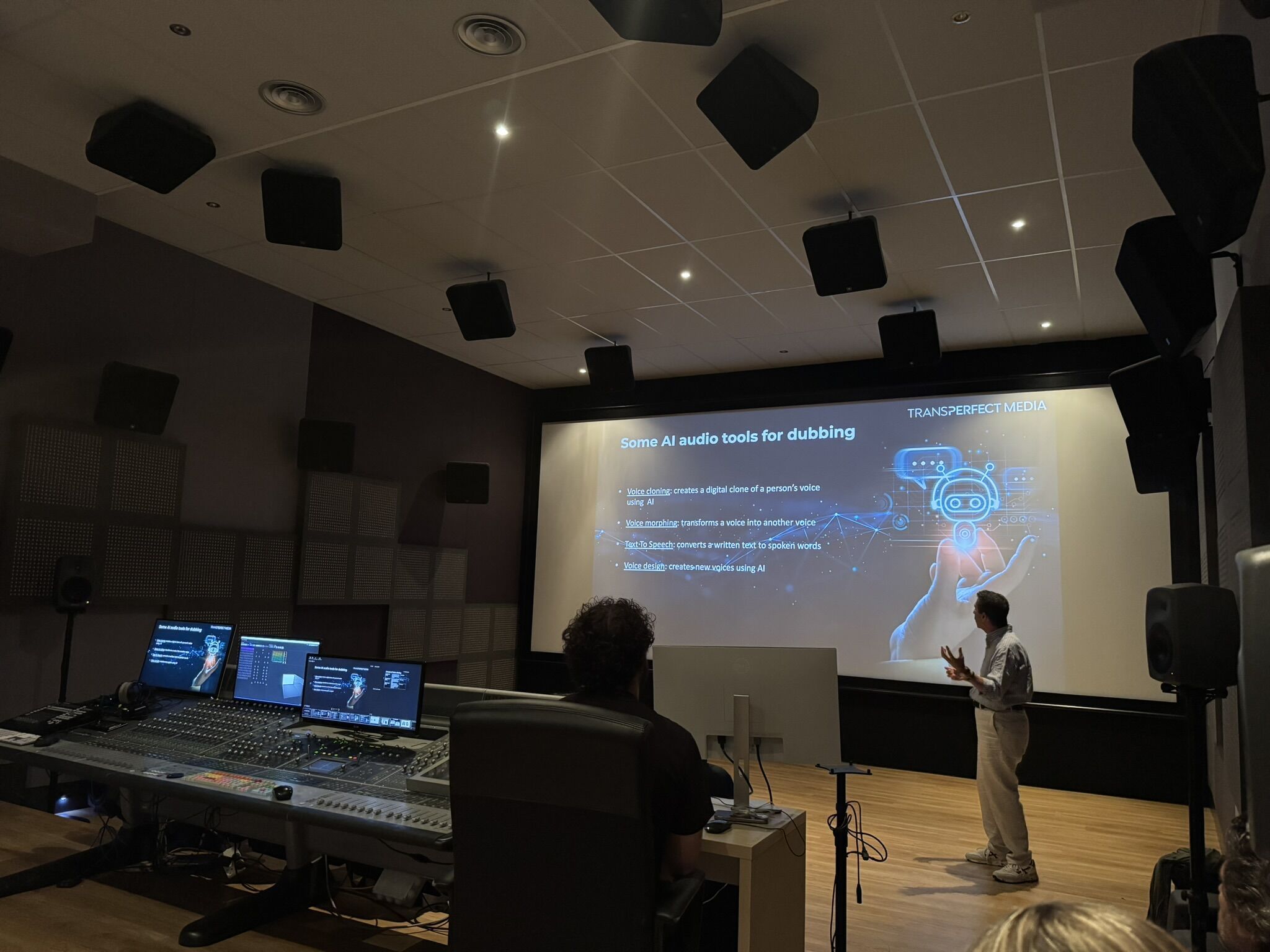 Javier Fernández, director de producción audiovisual de TransPerfect Media, dio detalles sobre la labor que se realiza en estos estudios: «Este año hemos trabajado en unos 20 proyectos en la Dolby Atmos Theatric and Mixing Room. En total hemos participado en 35 proyectos de doblaje, lo que equivale a unas 300 horas de contenido. Llevamos a cabo dos servicios, el de ‘doblaje llave en mano’, con el que entregamos el producto final al cliente. Y de ‘soporte técnico’, que consiste en el alquiler de la sala, donde vienen productores, directores como lo hicieron con Sirât».