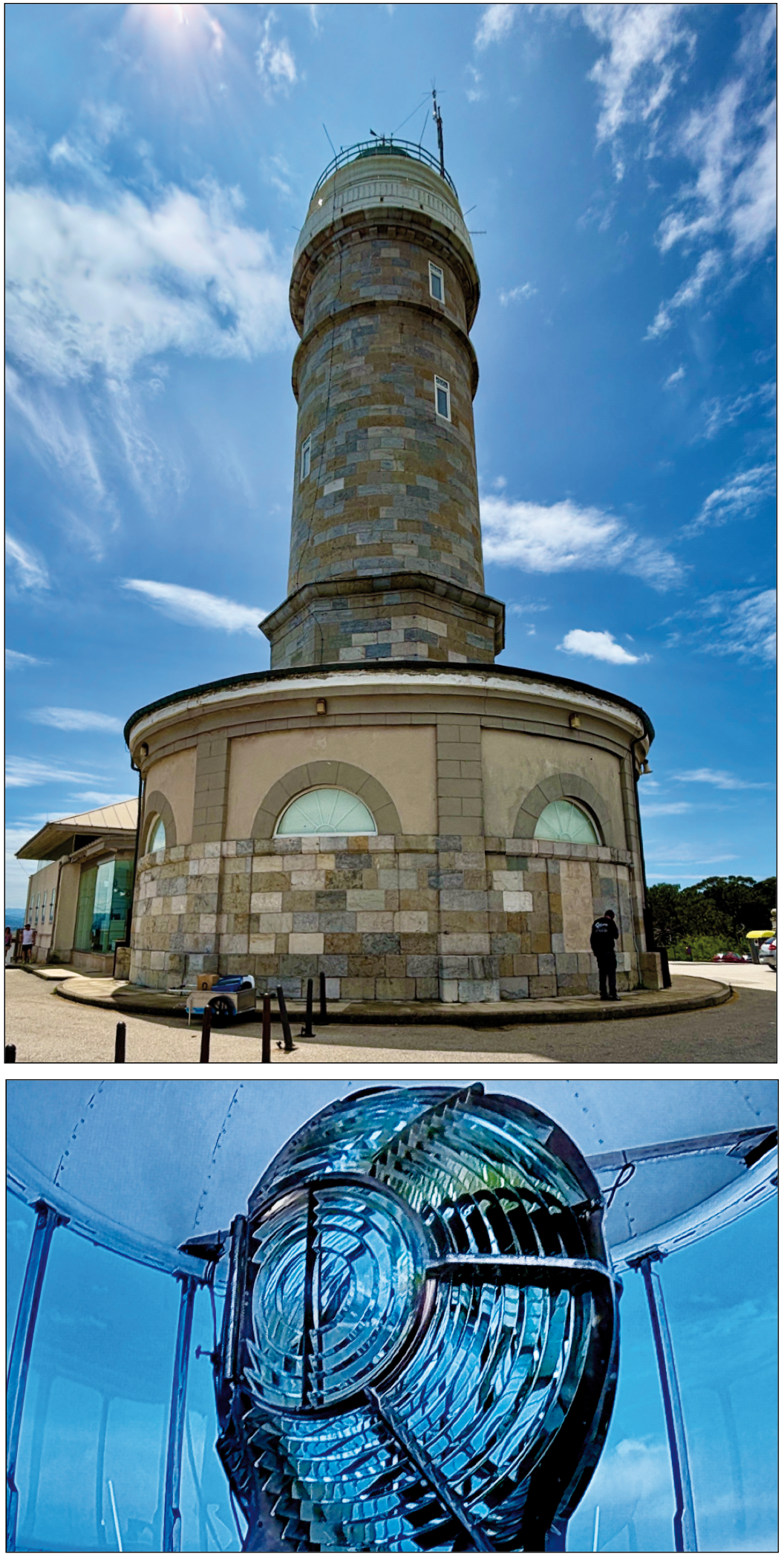 LAS VISTAS DESDE LA TORRE DEL FARO DE CABO MAYOR.- A 90 metros de altura sobre el mar y a 30 sobre la tierra, la perspectiva no cambia mucho pero sí impresiona, sobre todo por sus vistas despejadas sobre todo el espacio cercano y sobre buena parte de la región. A la izquierda, la sala del farero de guardia, en el interior de la torre.