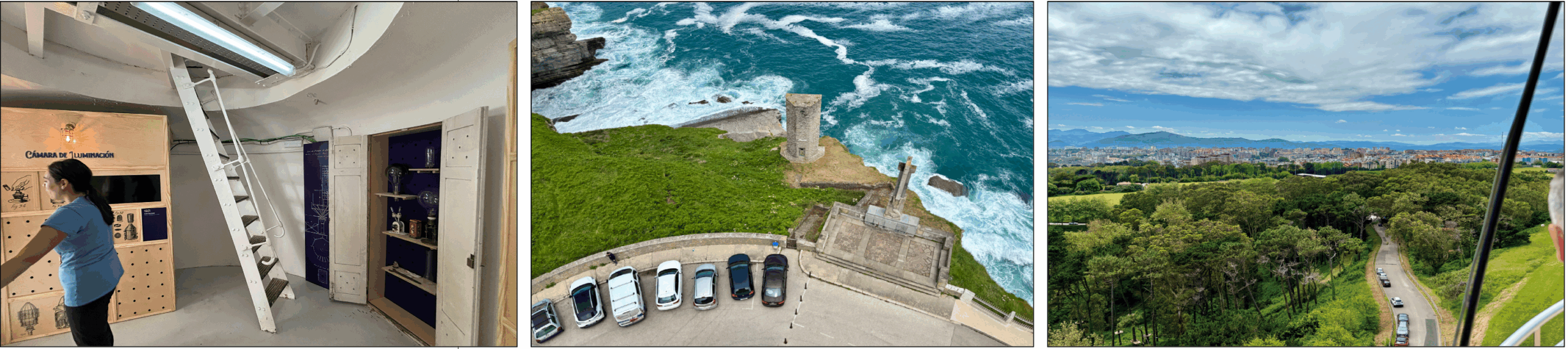 La experiencia en los tres casos es muy estimulante. No tanto por el paisaje a descubrir (que ya se conoce) como por la forma de verlo. Desde el Monumento al Indiano (el ‘Pirulí’) de Peña Cabarga se puede ver el 83% de la superficie de la región, y en su día alojó una cámara oscura, que permitía inmiscuirse en algunos de esos lugares de una forma sorprendente. Ahora se ha habilitado el mirador de la torre para nuevas experiencias, como un vuelo virtual que transmite la sensación de sobrevolar el territorio de la comunidad autónoma.
